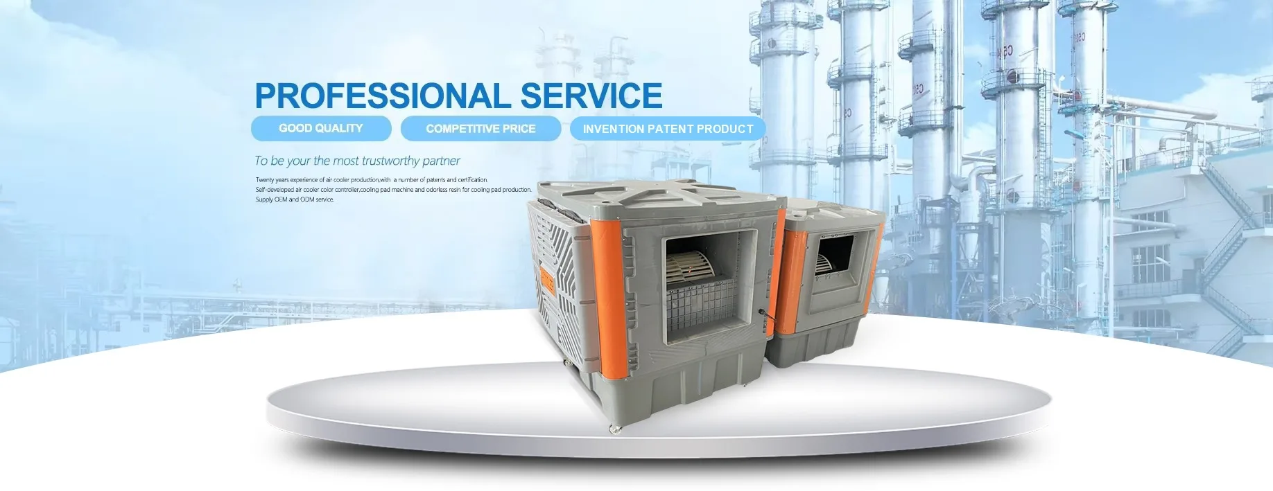 we are professional manufacturer of industrial air cooler and portable air cooler for 20 years,industrial air cooler series airflow from 18000m3/h to 50000m3/h,portable air cooler series airflow from 2000m3/h to 23000m3/h,large stainless steel series airflow from 40000m3/h to 100000m3/h and a variety of related accessories.